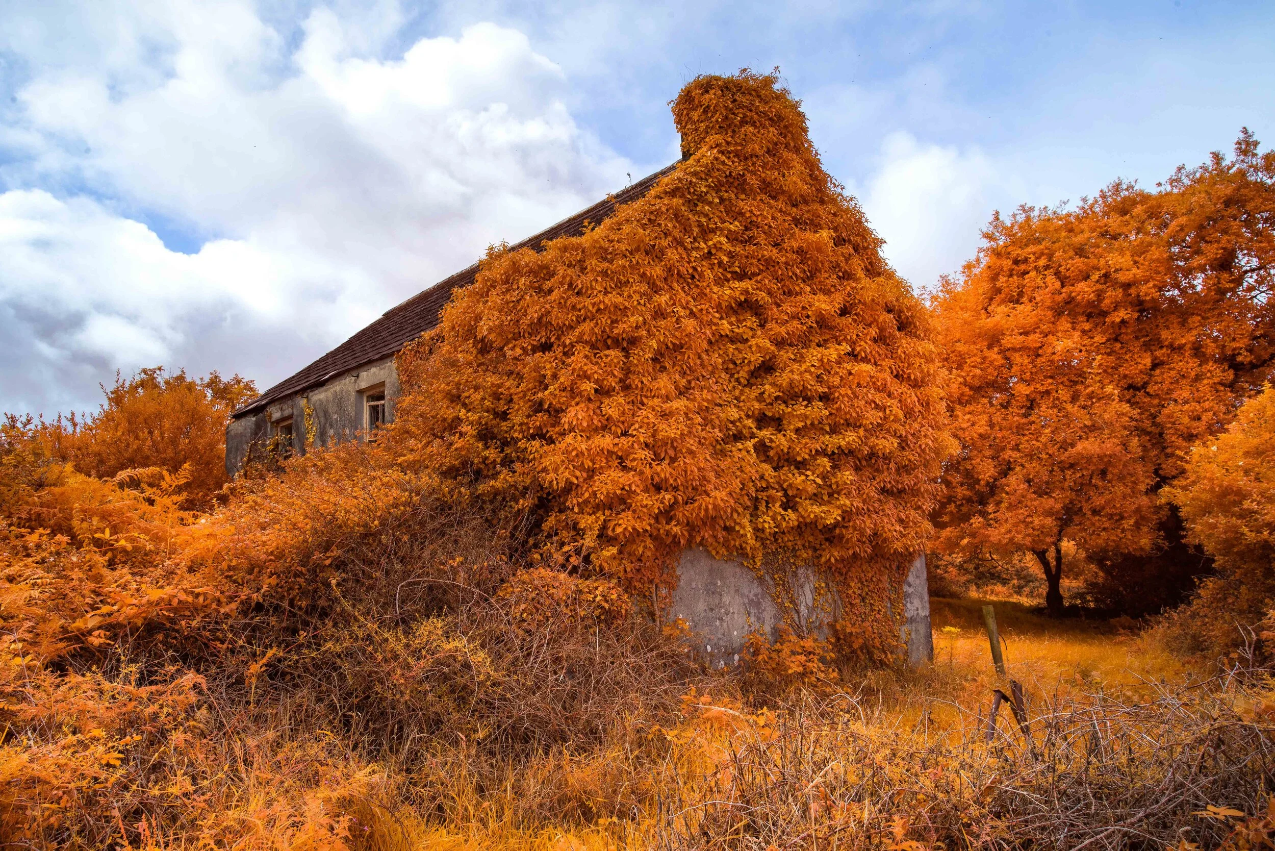 These photos have been taken with an Infrared camera, a full-spectrum Sony A7R with an IR Chrome filter. Green leaves turn into rich oranges and deep reds, blue skies gain contrast, yet brick and other hard surfaces maintain their original colour, making for some interesting photos.